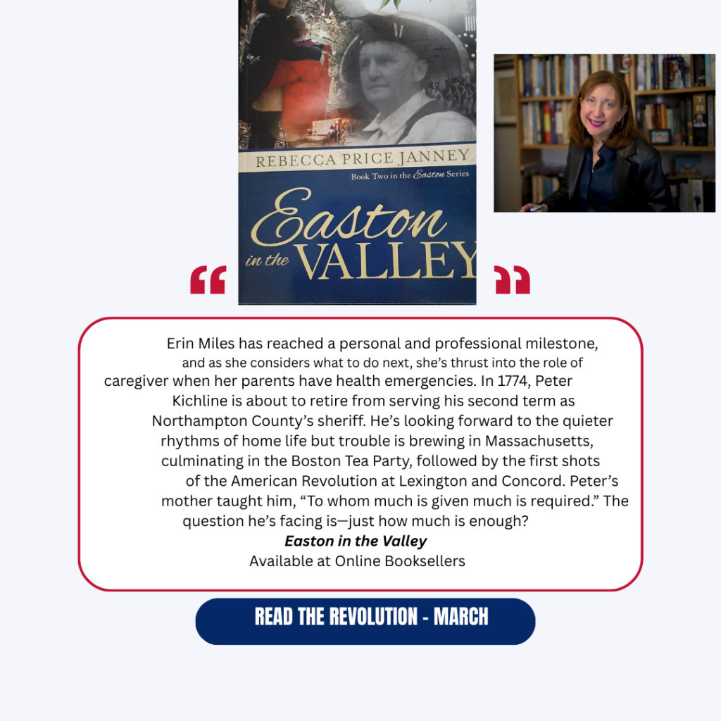 Read the Revolution – March EASTON IN THE VALLEY Join me in reading my March READ THE REVOLUTION book selection, EASTON IN THE VALLEY! Email me if you’d like to receive exclusive material related to this month’s Revolutionary War novel.